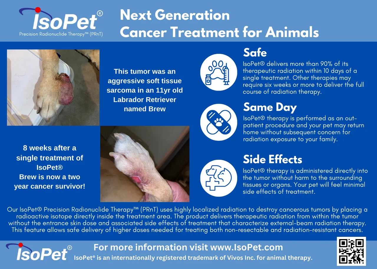 •Other Treatments: Depending on the diagnosis, treatments may include radiation, chemotherapy, medication or innovative, new generation, less invasive treatments such as IsoPet® Precision Radiocnuclide Therapy (PRnT)™