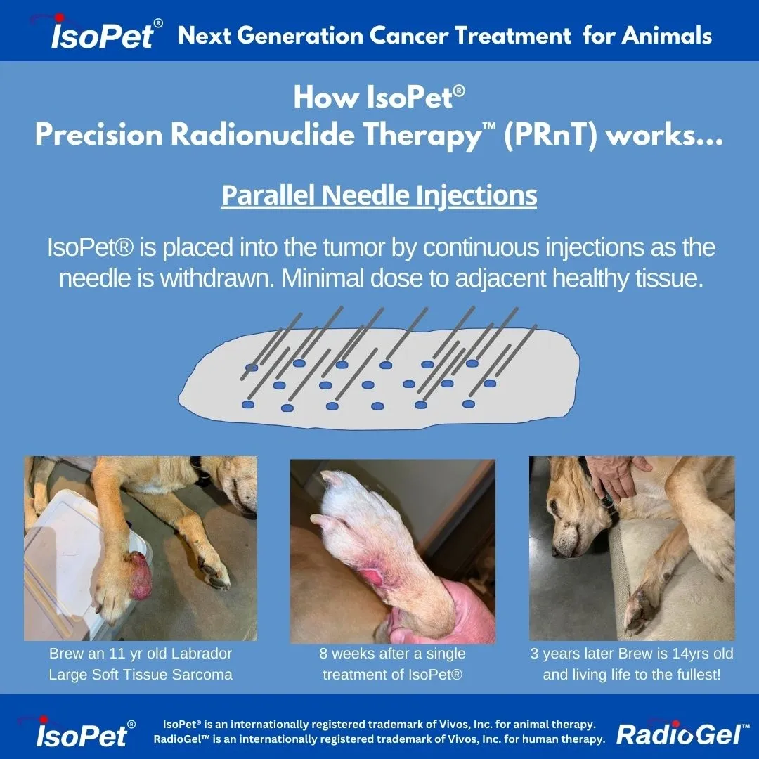 IsoPet® therapy is administered directly into the tumor without harm to the surrounding tissues or organs. Your pet will not feel any side effects of treatment.